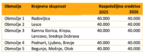 Predlogi morajo biti neprofitne narave, finančno ovrednoteni med 2.000 in 25.000 EUR z DDV, ter skladni z razvojnimi usmeritvami Občine Radovljica. Podrobnejše pogoje najdete na spletni strani občine.