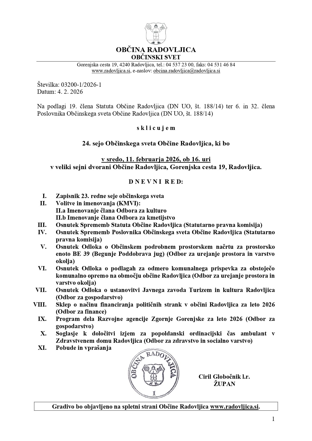 Javna razgrnitev predloga še vedno poteka. Rok za posredovanje pripomb in predlogov je zadnji dan javne razgrnitve, to je 20. februar 2026. Kljub temu, pa je obravnava osnutka odloka o Občinskem podrobnem prostorskem načrtu za prostorsko enoto BE 39 (Begunje Poddobrava jug)  predvidena na 24. seji Občinskega sveta Občine Radovljica, ki bo v sredo, 11. februarja 2026, ob 16. uri v veliki sejni dvorani Občine Radovljica.